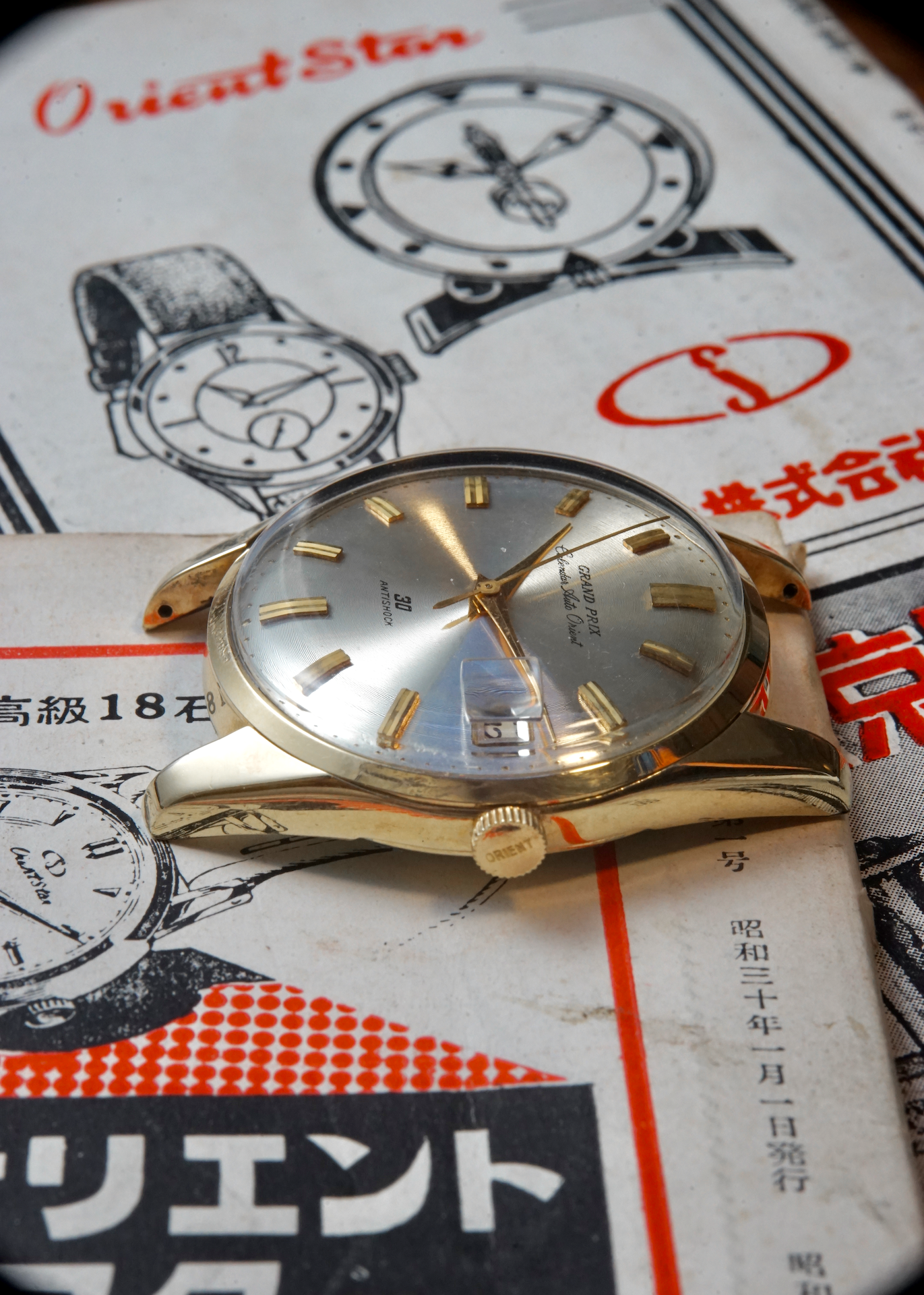In the early 1960s, Orient set out to craft high-end timepieces capable of standing alongside the finest Swiss watches. Between 1961 and 1963, several Grand Prix models were released — initially powered by upgraded versions of existing movements. By 1963–1964, Orient introduced dedicated calibers for the flagship Grand Prix watches.