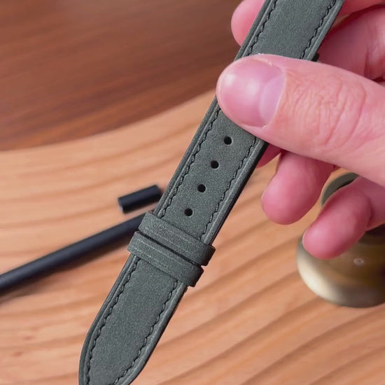Nubuck leather features a soft, velvety texture created by careful sanding and buffing, giving it a smooth, matte finish that stands out from regular leather. Incredibly soft and flexible, it fits comfortably to your wrist while remaining durable. The tight fibers resist scratches, keeping your strap looking great even with everyday use.