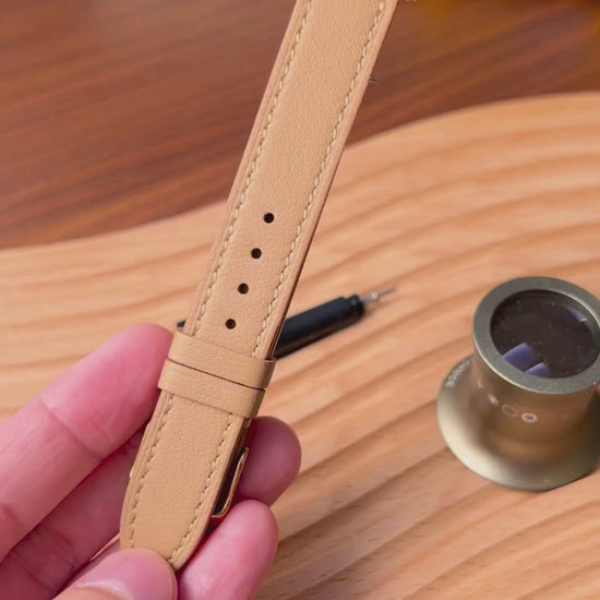 With skilled precision, our artisan cuts each watch strap from premium leather, laying the perfect foundation. This essential step ensures a flawless fit for your watch—combining beauty with exact craftsmanship.