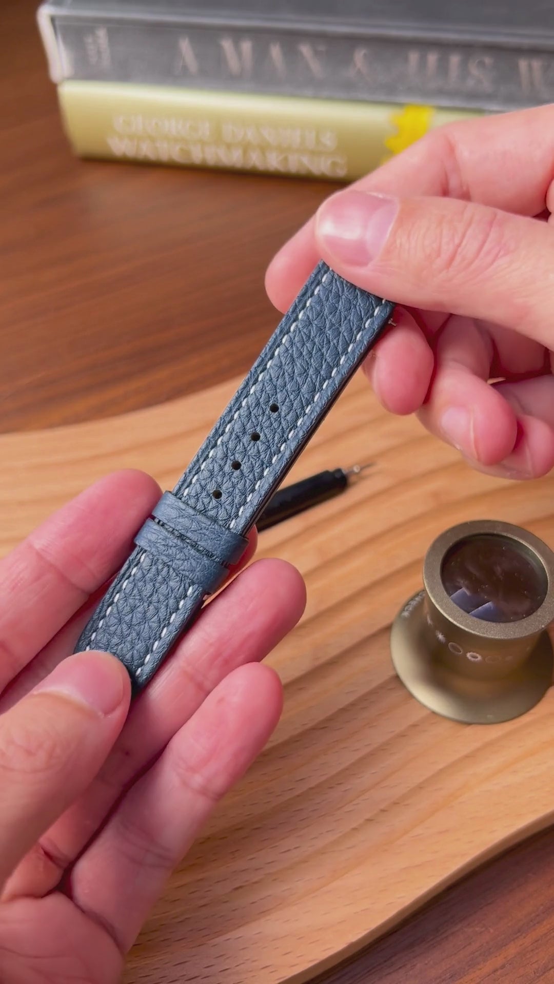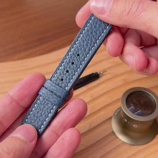 About this watch strap: This deep Zaffre Blue Togo leather strap brings a sophisticated maritime charm to your timepiece. Its rich, deep blue tone evokes the depths of the ocean, making it perfect for pairing with both vintage dress watches and contemporary minimalist timepieces.