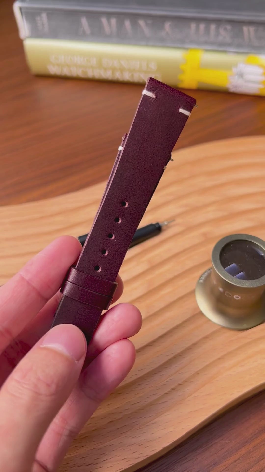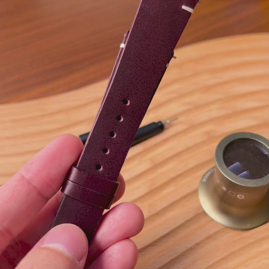 About this watch strap: The Burgundy Red Vintage Buttero leather strap is crafted for the adventurous spirit. Inspired by vintage aesthetics, this two-stitch offers a bold yet refined look.
