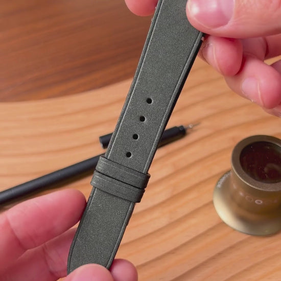 Nubuck leather features a soft, velvety texture created by careful sanding and buffing, giving it a smooth, matte finish that stands out from regular leather. Incredibly soft and flexible, it fits comfortably to your wrist while remaining durable. The tight fibers resist scratches, keeping your strap looking great even with everyday use.